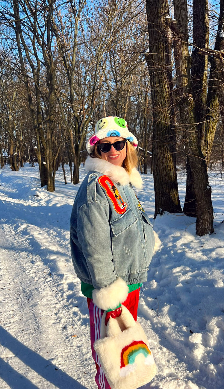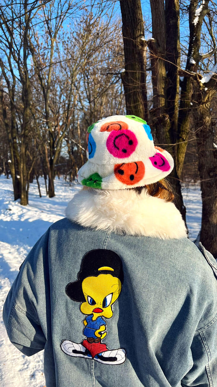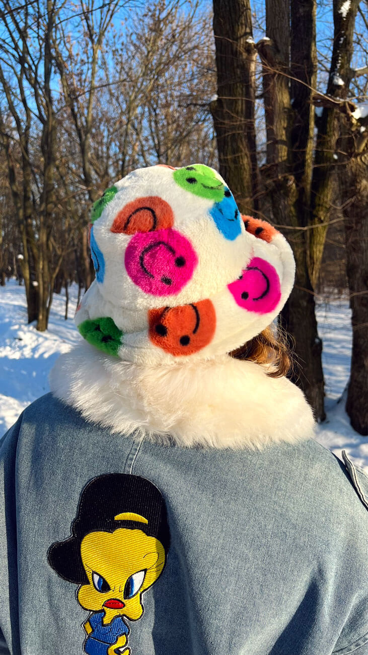 Kolor: śmietankowy w kolorowe uśmiechałki.
